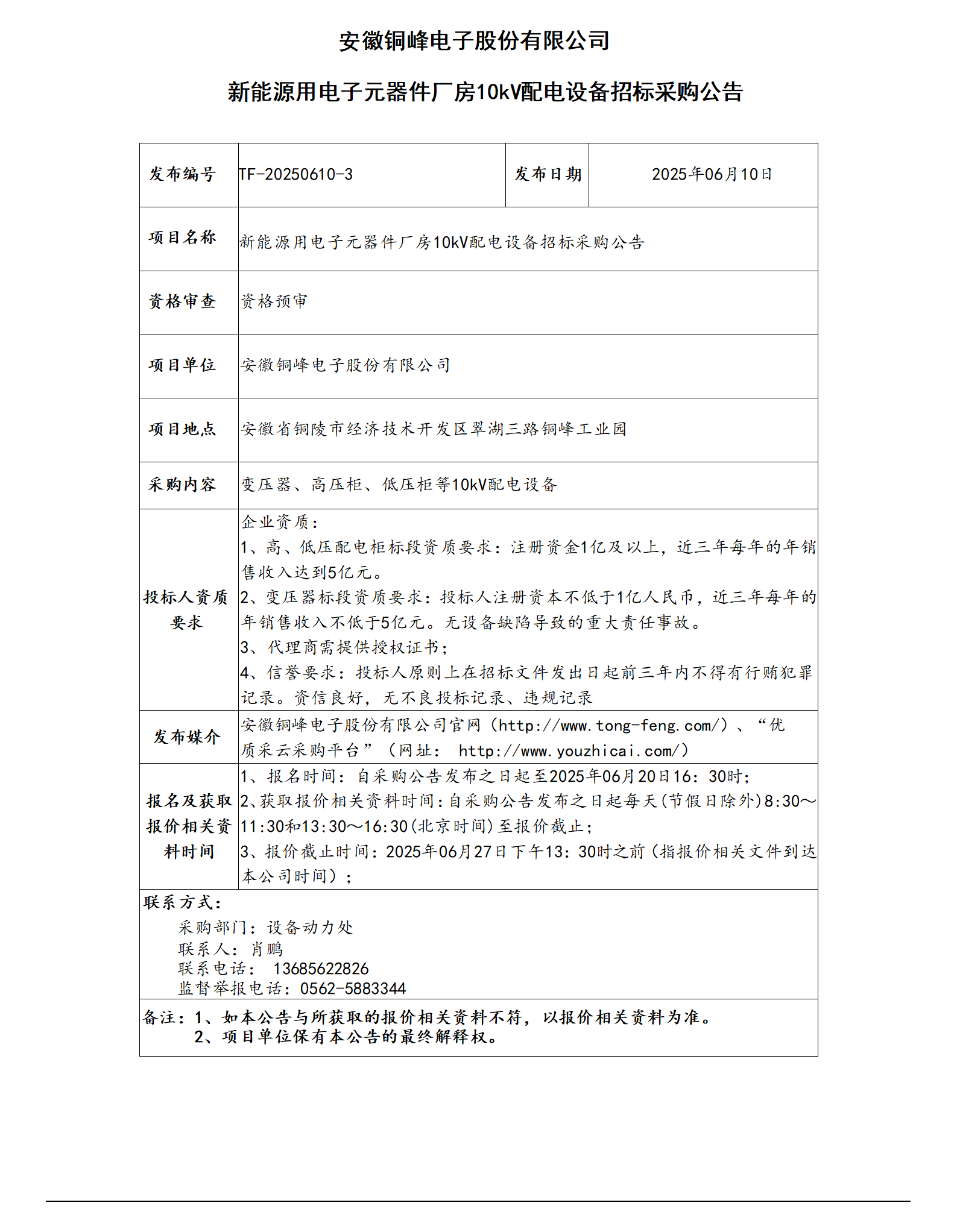 新能源用電子元器件廠房10kV配電設備采購招標公告_01