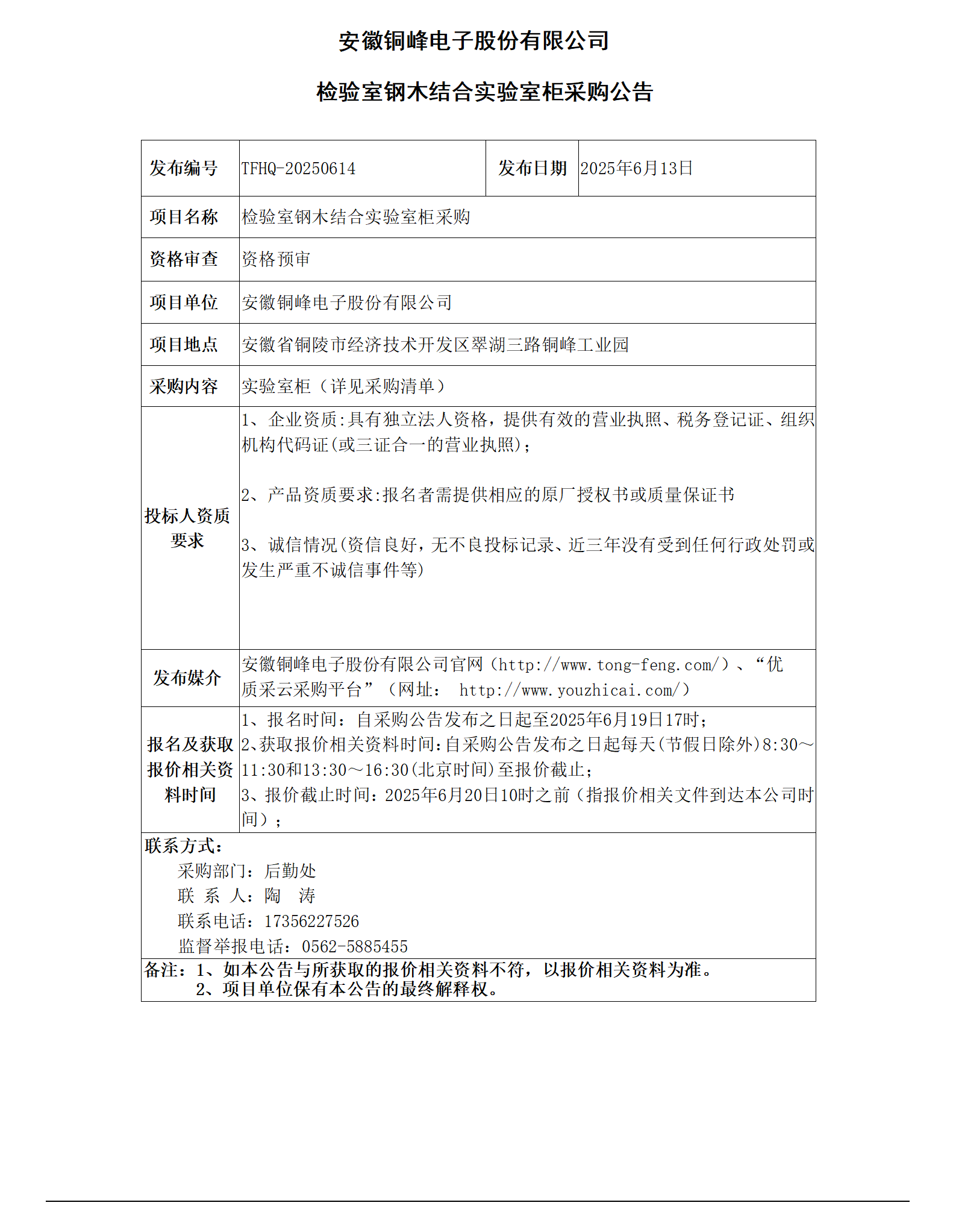 安徽銅峰電子股份有限公司 (檢驗(yàn)室鋼木結(jié)合實(shí)驗(yàn)室柜采購(gòu)公告)_01