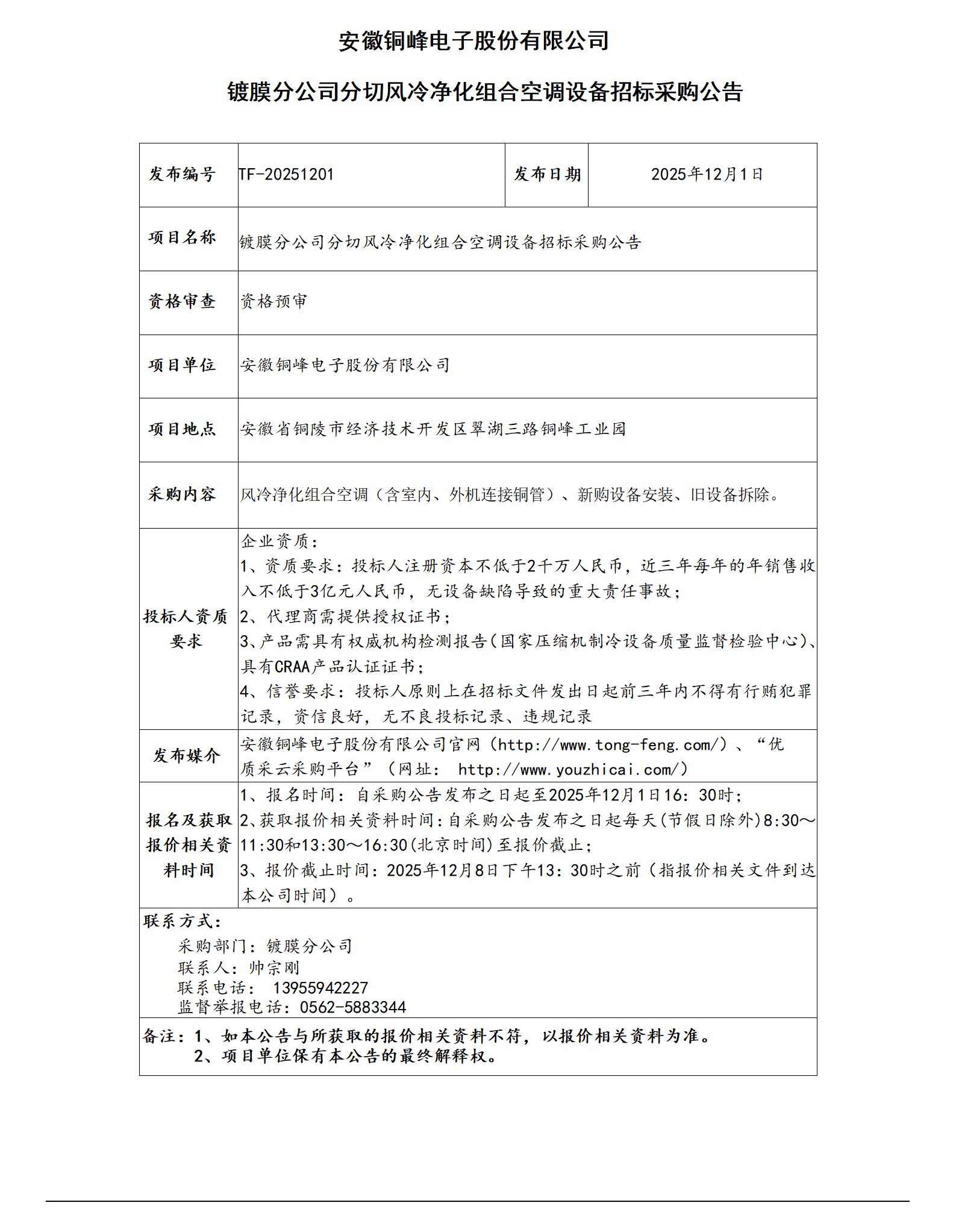 鍍膜分公司分切凈化空調(diào)設(shè)備采購招標(biāo)公告_01
